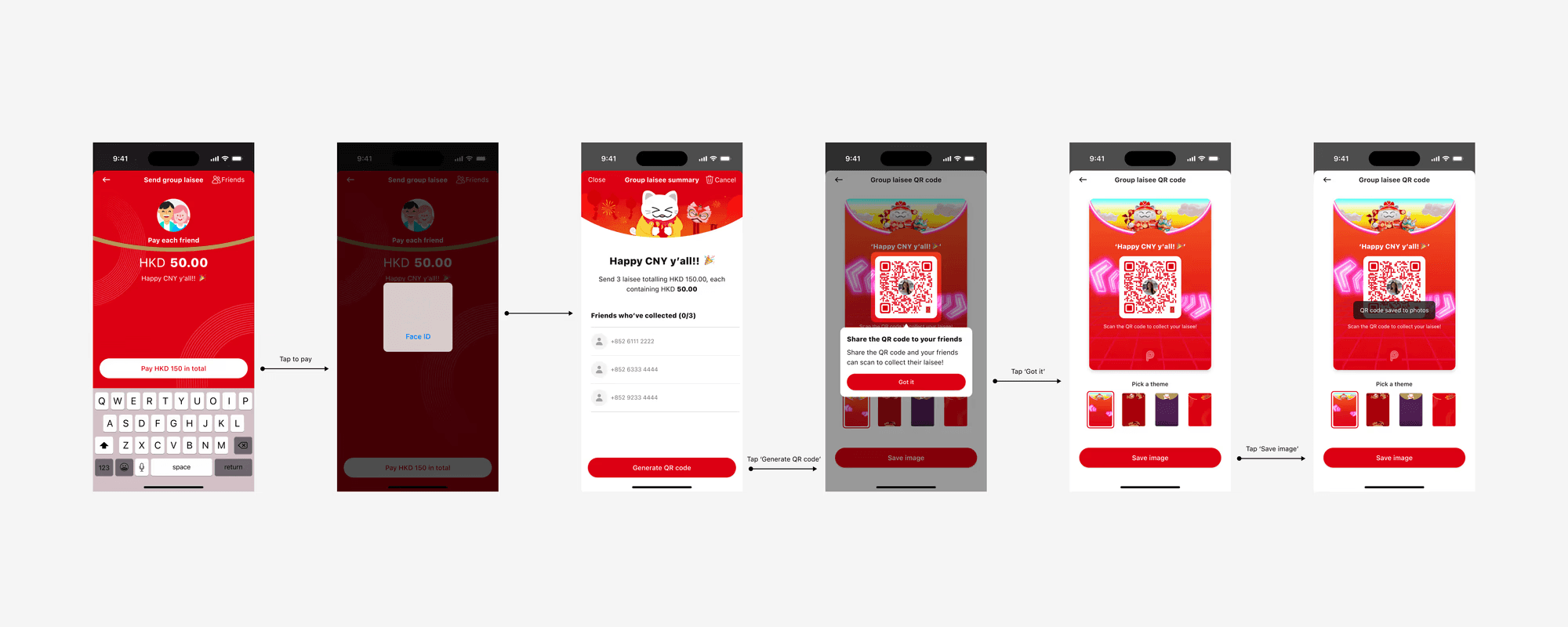 In the new design, after payment, senders can now customize and share their eLaisee QR code directly from the new modal. They can select a preferred design theme before sending the group laisee to friends and family.